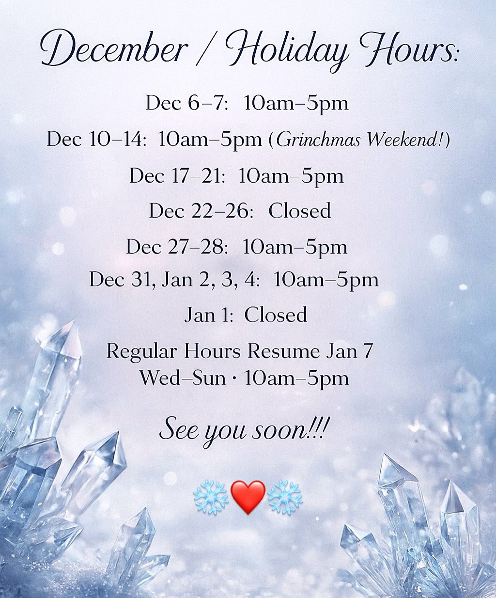 Whether you’re captivated by the calming energy of rose quartz or the protective strength of black tourmaline, our passionate & knowledgeable staff are here to help you find the perfect crystal for your needs. Immerse yourself in our enchanting collection, where each gemstone holds its own unique magic, waiting to guide and inspire you.